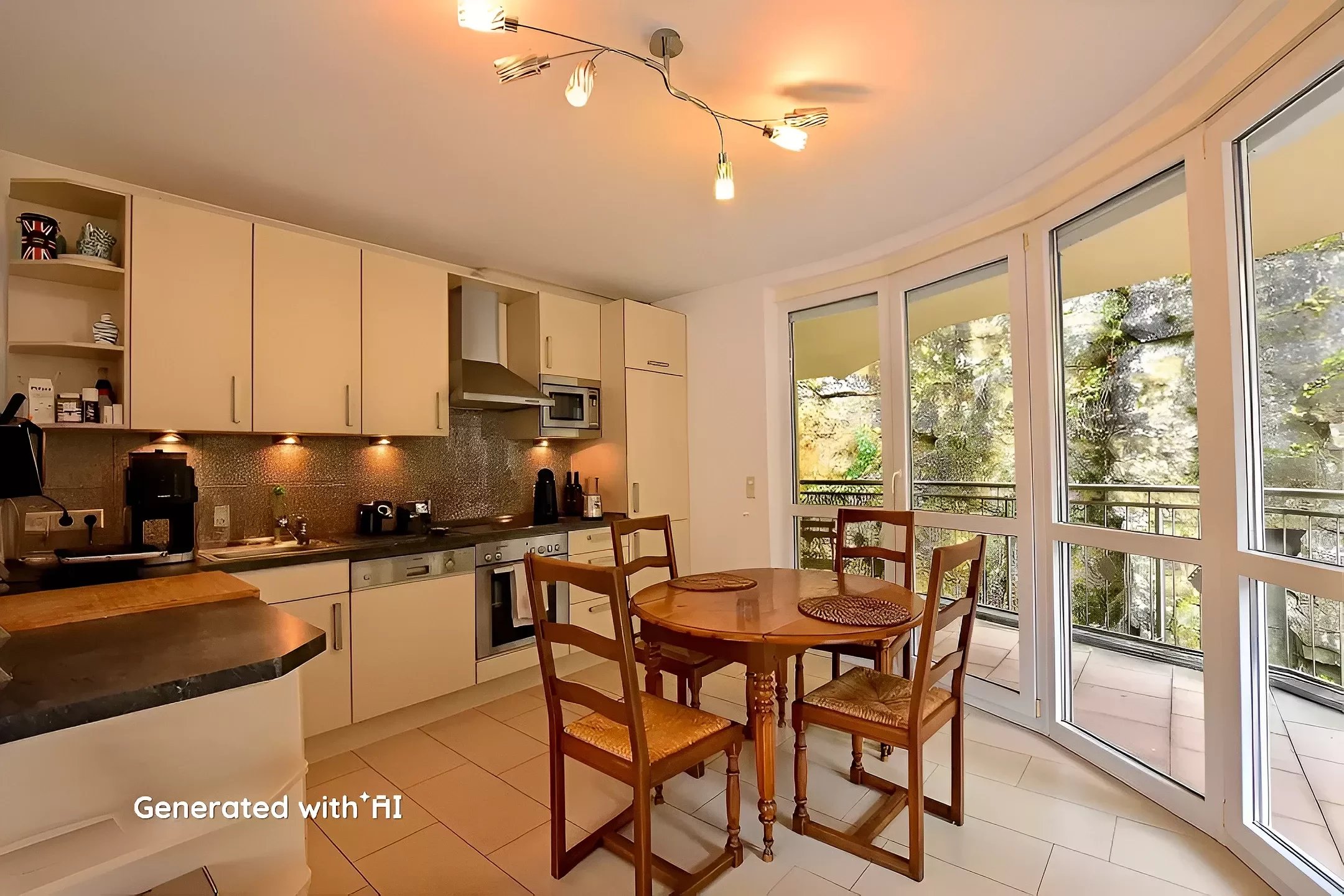 – une grande cuisine équipée ouverte, avec accès à une terrasse à l’arrière de la résidence