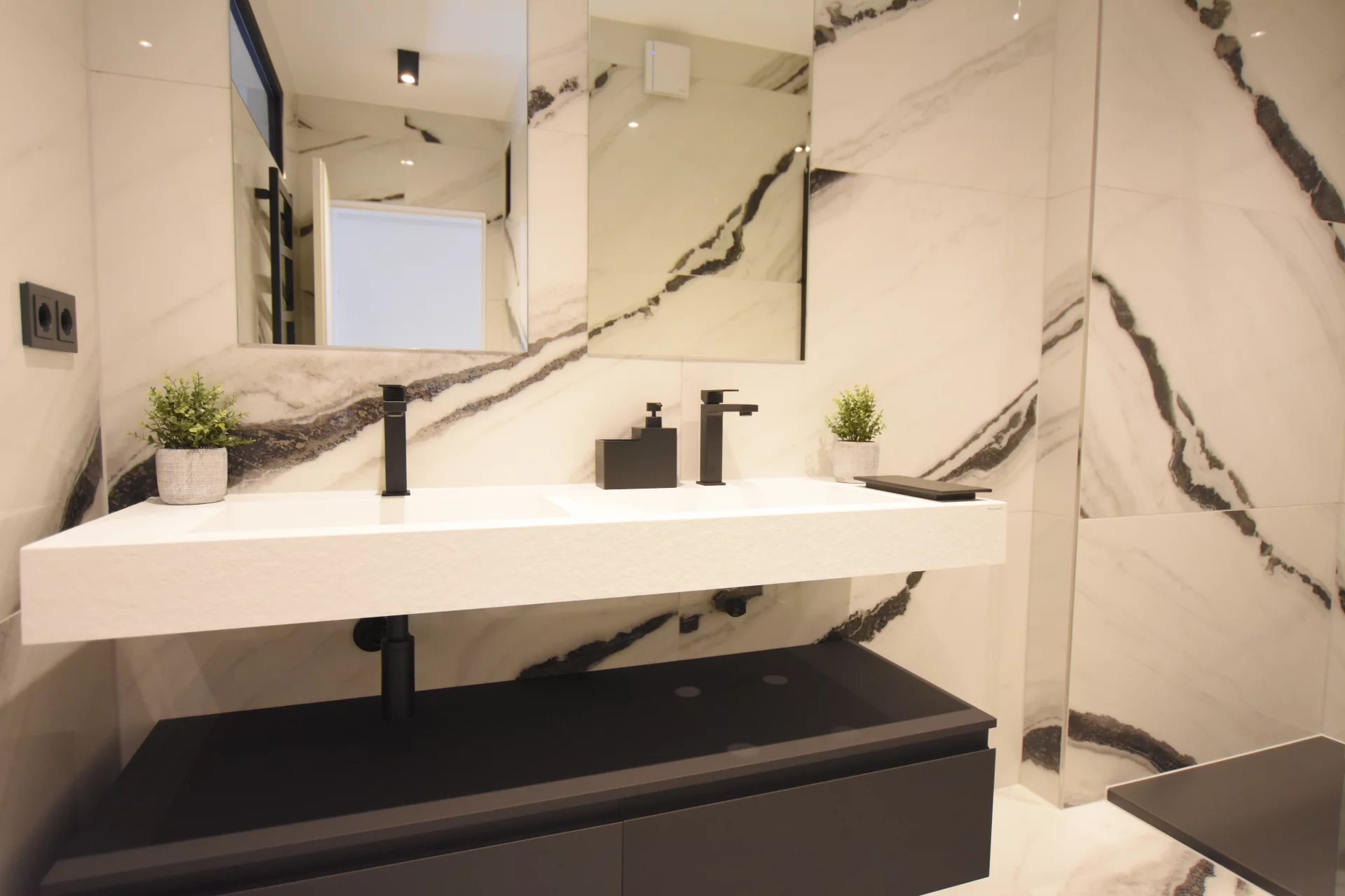 This exceptional property also features a bio-ethanol fireplace, a 55-inch TV, a prestige BINOVA kitchen with Siemens appliances, a wine cellar and a Nespresso coffee machine. The materials have been chosen with taste: Italian furniture and fittings, large-format Italceramica tiles, flush doors and top-of-the-range handles.