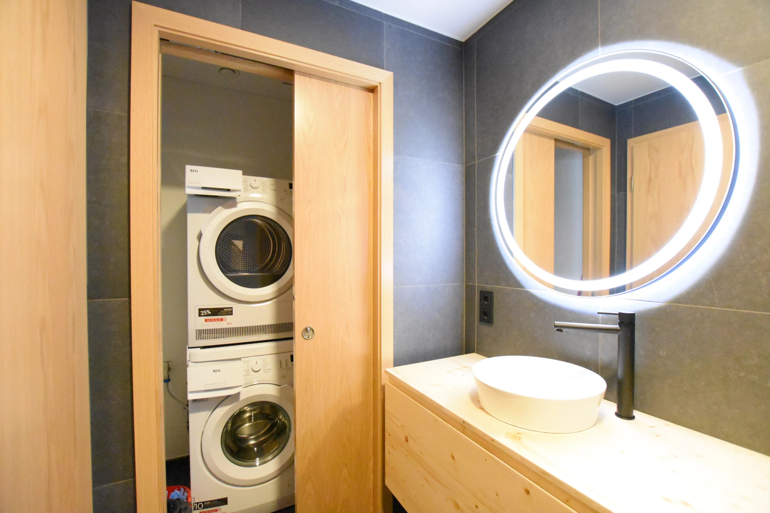 – shower room with cupboard containing washing machine, tumble dryer and mechanical ventilation system