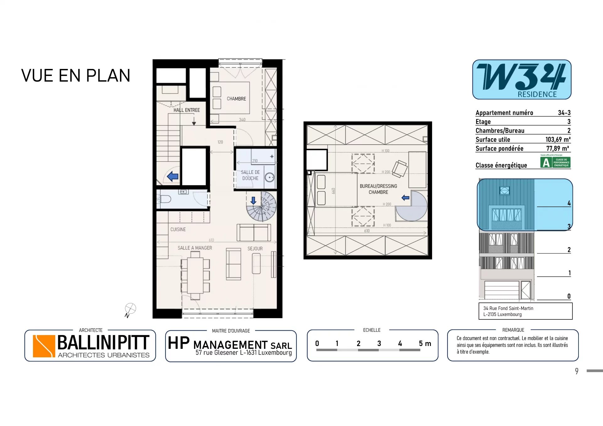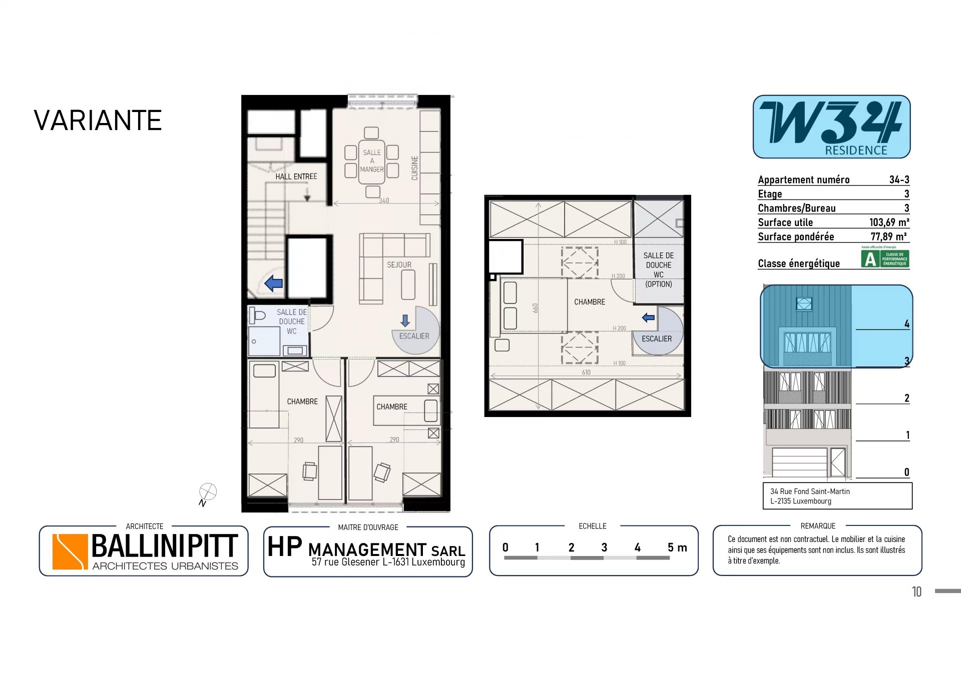 Ideally located a stone’s throw from the Kirchberg plateau and European institutions, this third- and fourth-floor apartment is suitable for both investors and owner-occupiers, and is composed as follows: